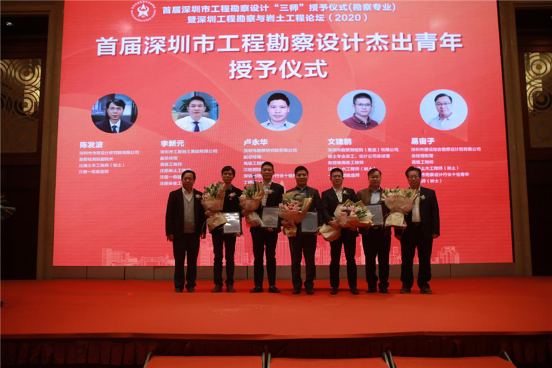 工勘巖土集團(tuán)副總經(jīng)理李新元(左三)獲評為“首屆深圳市工程勘察設(shè)計(jì)杰出青年”